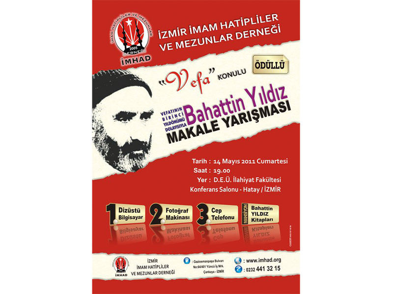 Bahattin Yıldız adına İMHAD (İZMİR İMAM HATİPLİLER VE MEZUNLAR DERNEĞİ) tarafından “VEFA” konulu makale yarışması düzenleniyor.